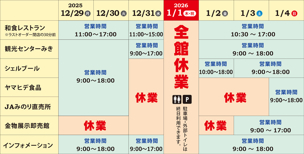 和食レストラン平日11:00~17:00 (ラストオーダー 16:30)