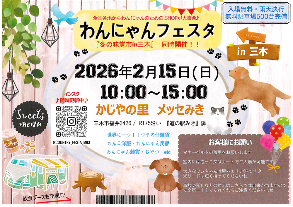 2/15(日) 三木 冬の味覚市 & わんにゃんフェスタ in 三木