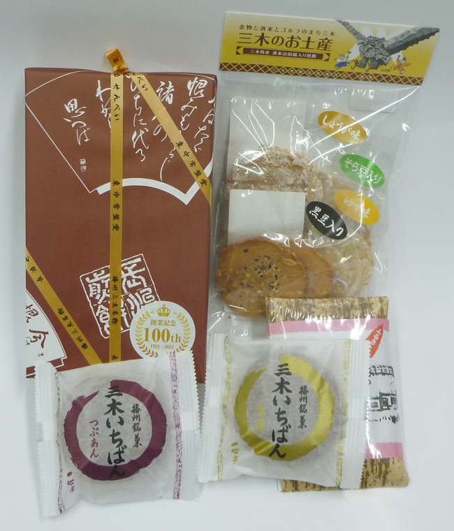 ①長治せんべい ②松茸昆布 ③金物せんべい