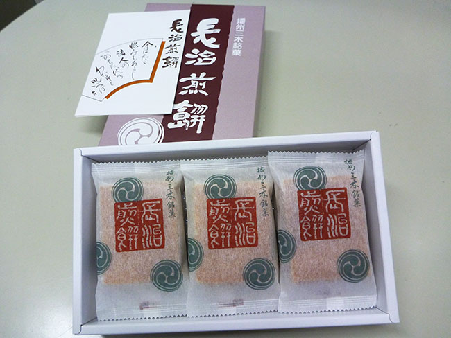 羽柴秀吉軍と戦った際、城兵らの命と引き替えに切腹した逸話で、今も市民から慕われる三木城主・別所長治(べっしょ ながはる)公の名前を冠した1927年に製造販売が始まった三木のお土産の定番です。やさしい味わいと口の中で溶けるような感覚が特徴です。