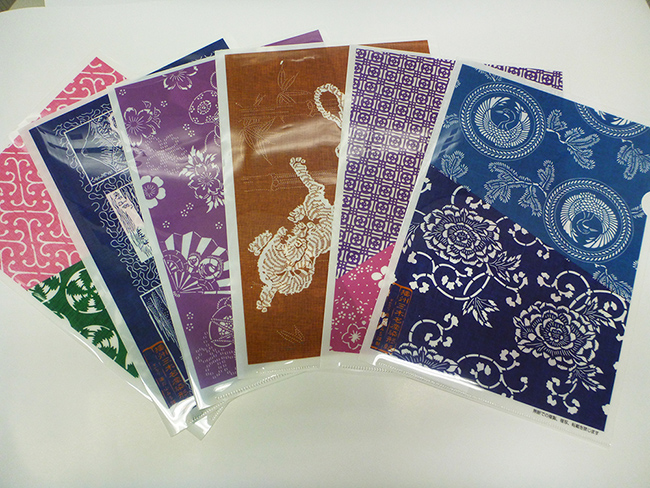 型紙生産の歴史は古く、三木の庶民記録、延宝7年(1679)の検地帳には、形屋・紺屋の名が多く見られます。三木の歴史と工芸を重ねてもつ三木の染形紙文様を6種類のクリアファイルとして作成しました。